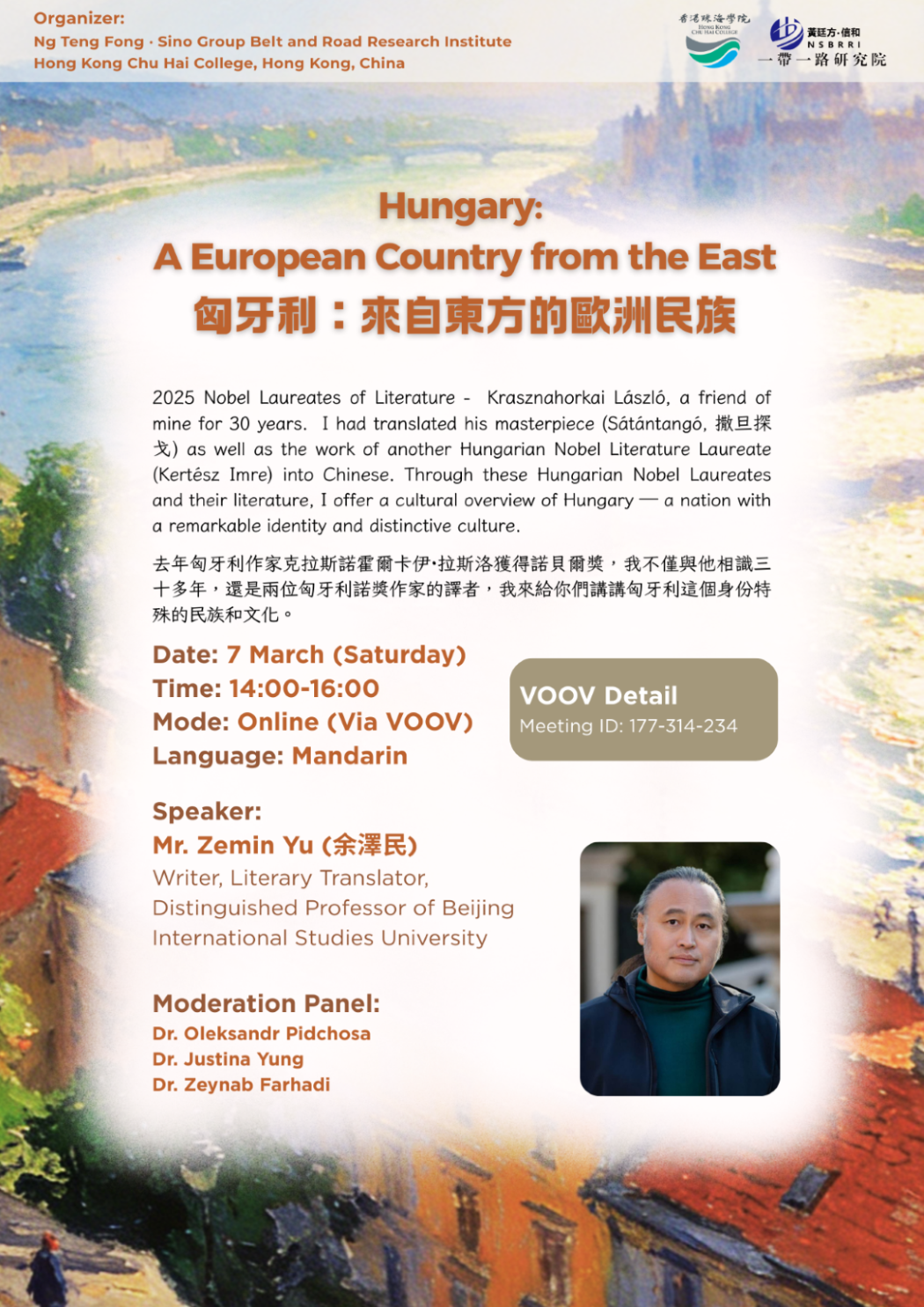课程简介会: 社会科学硕士 (一带一路国家国际工商管理) 社会科学硕士 (一带一路国家国际关系) 时间:16:00 -17:00 语言:英语 讲者: 1. Prof. Oleksandr ROGACH 2. Prof. Oleksandr PIDCHOSA 3. Prof. Svitlana ANDRUSHCHENKO 4. Prof. Darya GLUKHOVA