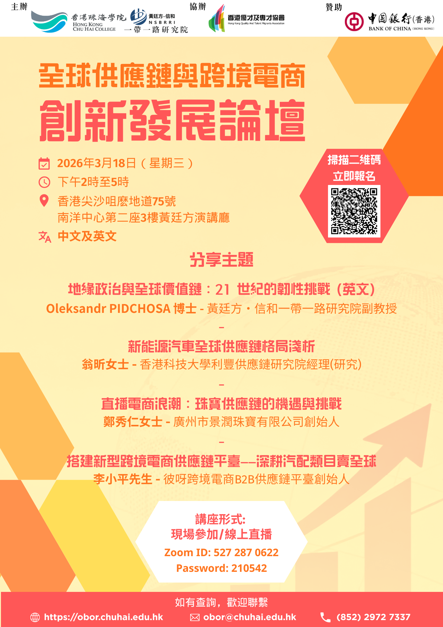 举行地点 : 5F Meeting Room, Chu Hai College of Higher Education- Online Seminar |